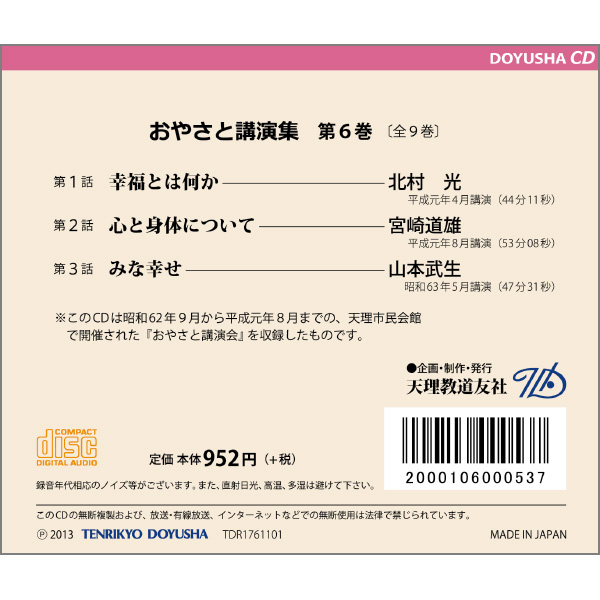 ※これは、カセットテープで販売している『おやさと講話』『おやさと講演集』をCD化したものです。
