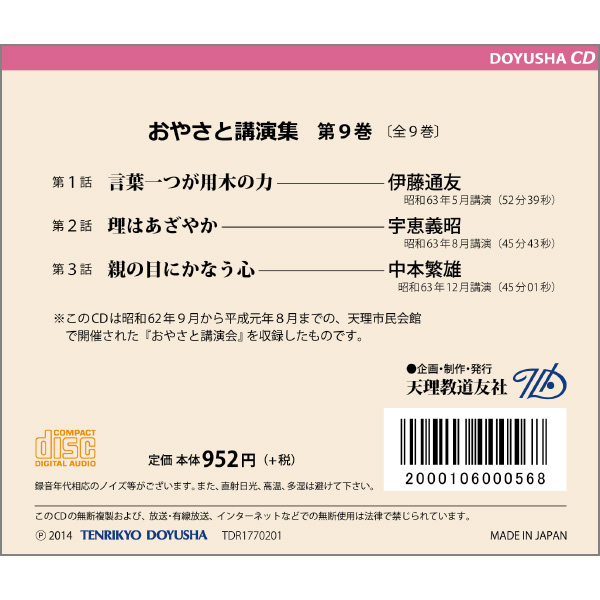 ※これは、カセットテープで販売している『おやさと講話』『おやさと講演集』をCD化したものです。